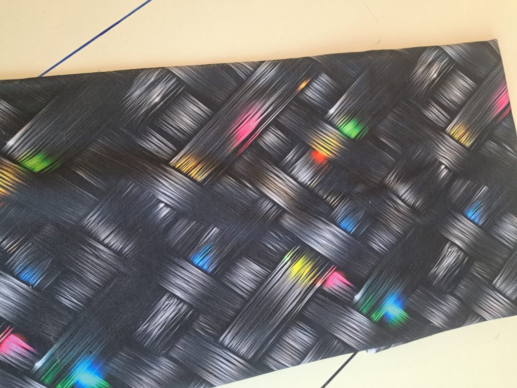Teplákovina z polyesterové příze s bavlněným omakem (cotton touch). Lícní strana je hladká, rubní strana je počesaná. Mírně elastická.