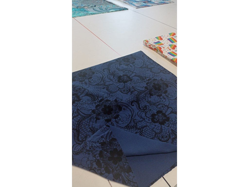 Bavlněný úplet, rotační tisk, tmavě modrý podklad, LG40311, ODHAD 13M