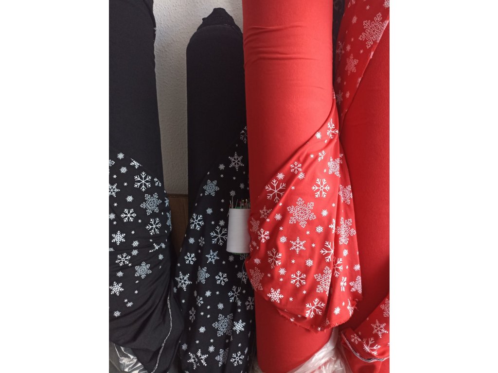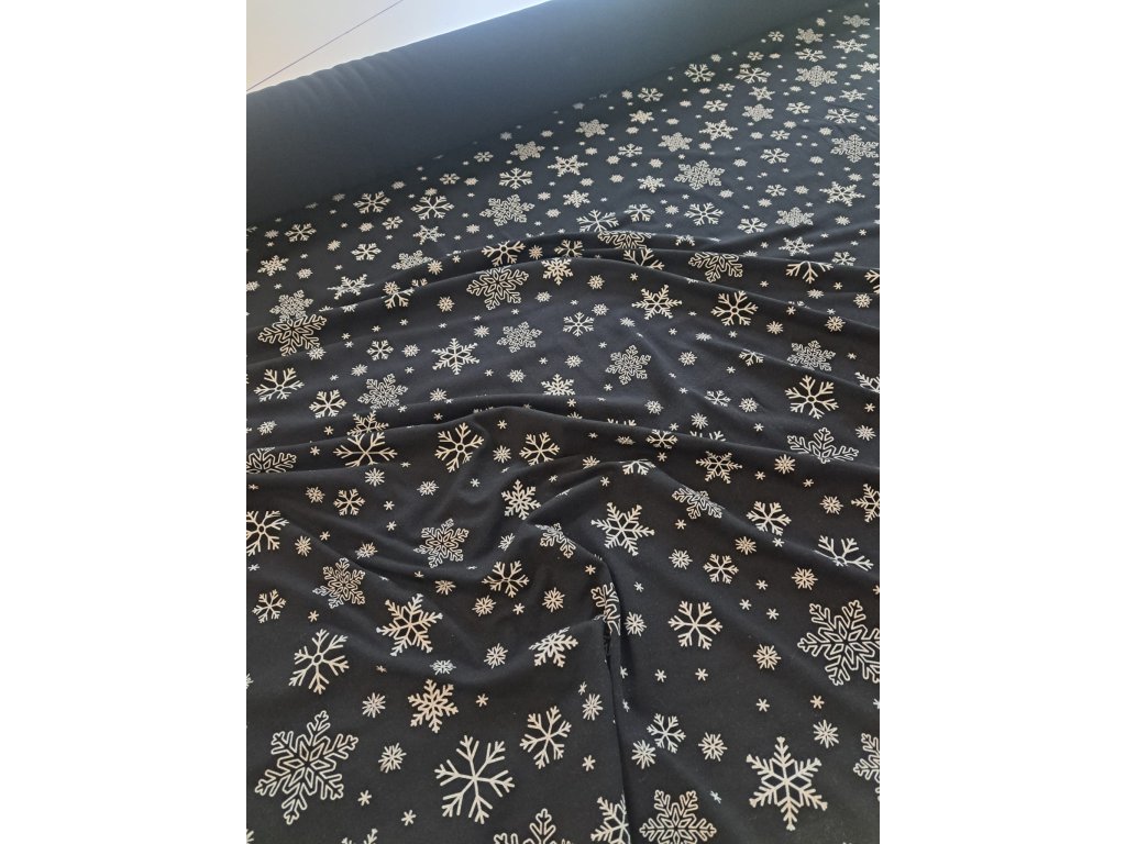 Úplet, rotační tisk, vločky na černé 221102, odhad OK09