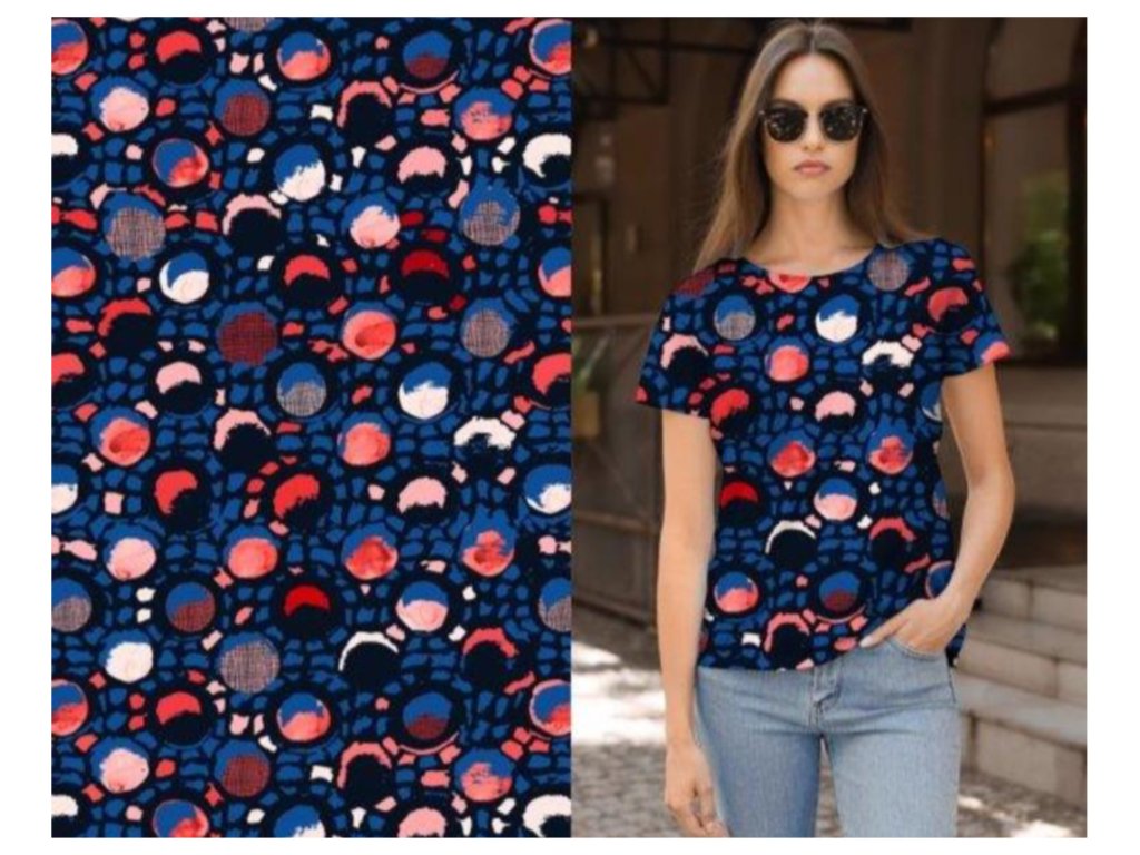 Viskózový úplet je výborný materiál, který skvěle saje pot a nelepí se na tělo. Je velmi pružný a velmi dobře se na těle nosí. Úplety jsou vhodné na sukně, šaty,