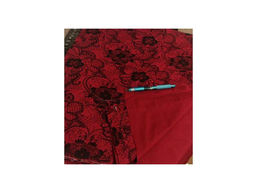 Viskozový úplet, rotační tisk, květy na bordo podkladu, lg40317B, I09