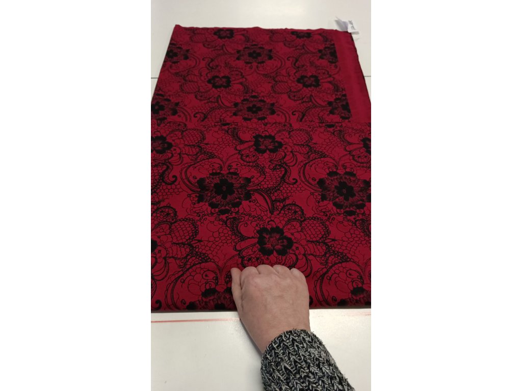 Viskozový úplet, rotační tisk, květy na bordo podkladu, lg40317, INV