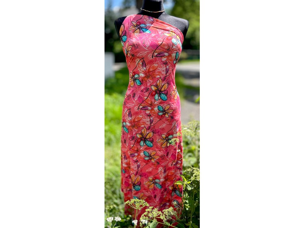 Kimo je kvalitní polyesterový úplet s příměsí elastanu, který je ideální pro šití elegantních a pohodlných oděvů. Díky své jemnosti, pružnosti a splývavosti se skvěle hodí zejména na šaty, sukně, halenky a další oblečení vyžadující lehkost a komfort.