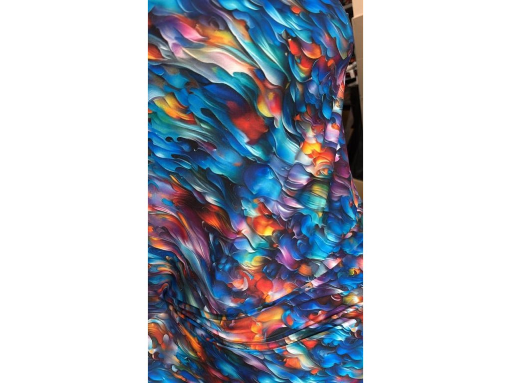 Kimo je kvalitní polyesterový úplet s příměsí elastanu, který je ideální pro šití elegantních a pohodlných oděvů. Díky své jemnosti, pružnosti a splývavosti se skvěle hodí zejména na šaty, sukně, halenky a další oblečení vyžadující lehkost a komfort.