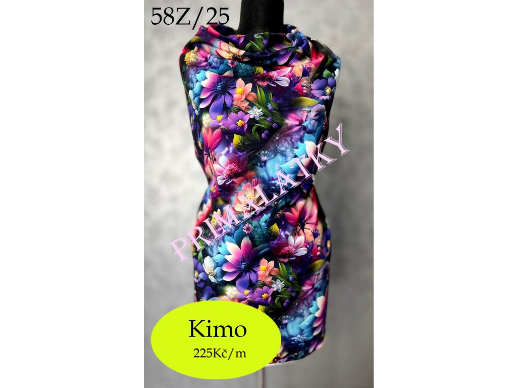 Kimo je kvalitní polyesterový úplet s příměsí elastanu, který je ideální pro šití elegantních a pohodlných oděvů. Díky své jemnosti, pružnosti a splývavosti se skvěle hodí zejména na šaty, sukně, halenky a další oblečení vyžadující lehkost a komfort.