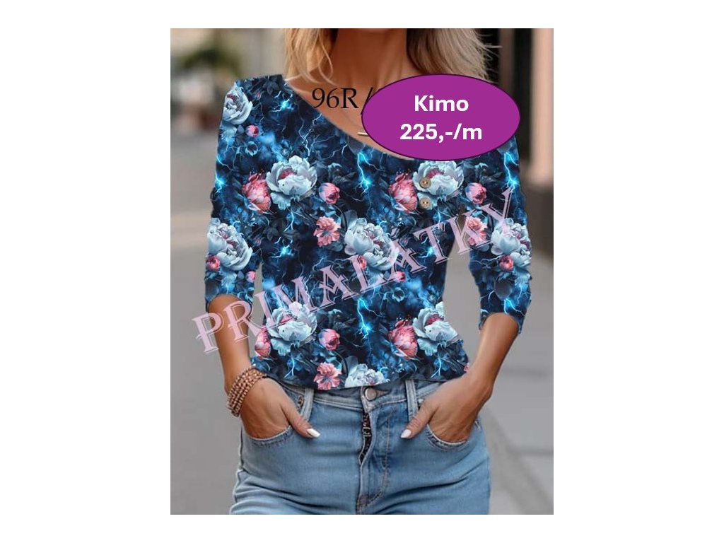 Kimo je kvalitní polyesterový úplet s příměsí elastanu, který je ideální pro šití elegantních a pohodlných oděvů. Díky své jemnosti, pružnosti a splývavosti se skvěle hodí zejména na šaty, sukně, halenky a další oblečení vyžadující lehkost a komfort.