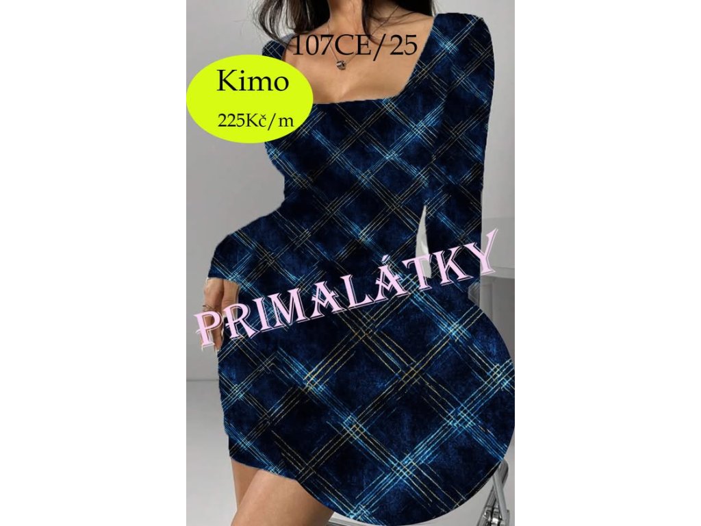 Kimo je kvalitní polyesterový úplet s příměsí elastanu, který je ideální pro šití elegantních a pohodlných oděvů. Díky své jemnosti, pružnosti a splývavosti se skvěle hodí zejména na šaty, sukně, halenky a další oblečení vyžadující lehkost a komfort.