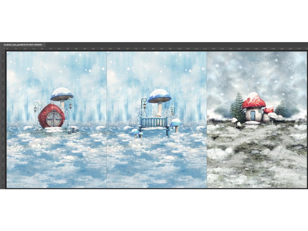 bavlněný úplet šíře 180 cm s dig.tiskem, trojpanel houbičky, I0904