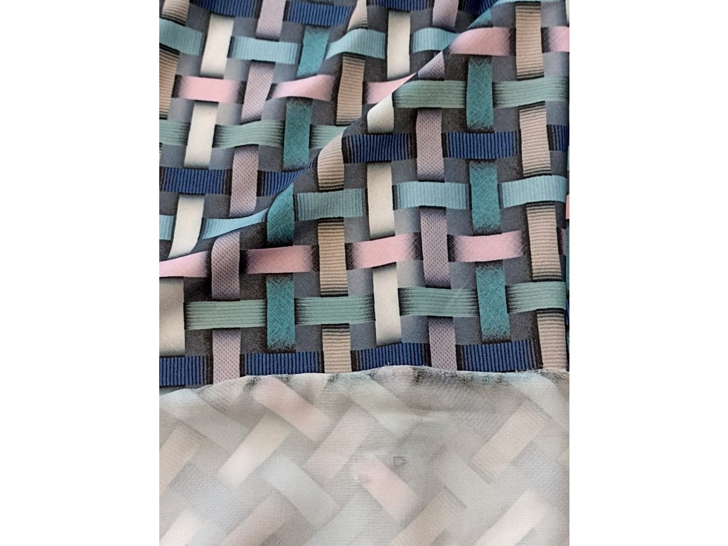 Imitace hedvábí, často označovaná jako "silk" nebo "pavučinka," je syntetická tkanina, která napodobuje vlastnosti pravého hedvábí. Obvykle je vyrobena z polyesteru s přídavkem elastanu, což jí dodává pružnost a lehkost. Tento materiál je příjemný na dotek, splývavý a často se používá pro šití šatů, halenek, pyžam či šátků.