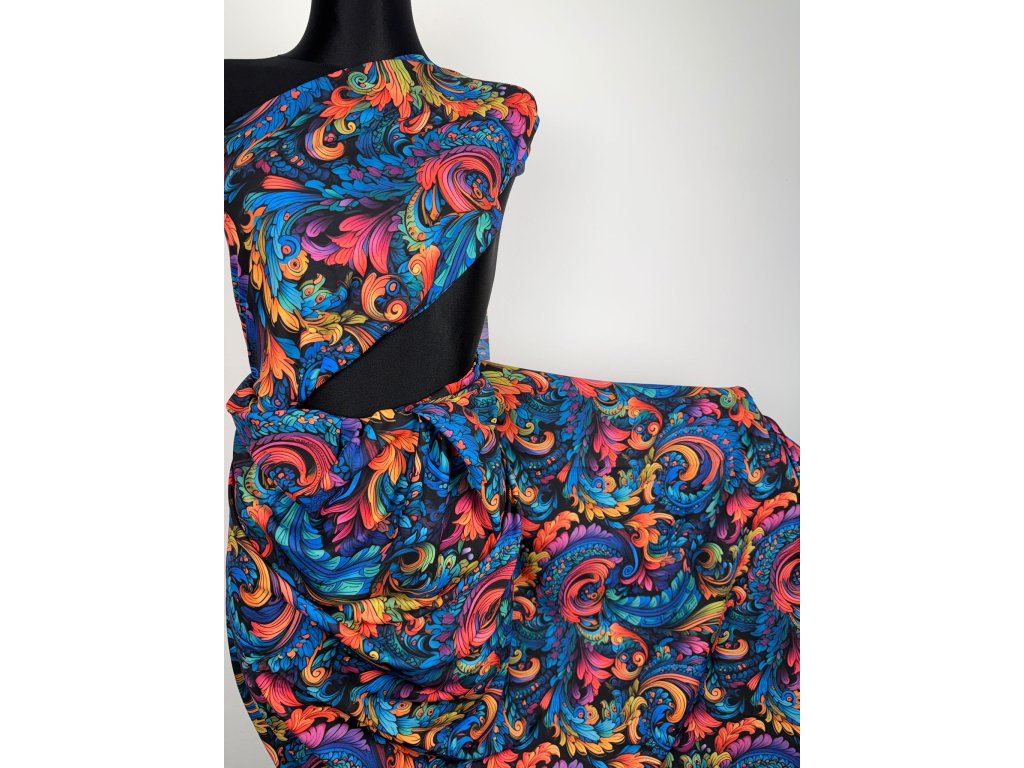 Imitace hedvábí, často označovaná jako "silk" nebo "pavučinka," je syntetická tkanina, která napodobuje vlastnosti pravého hedvábí. Obvykle je vyrobena z polyesteru s přídavkem elastanu, což jí dodává pružnost a lehkost. Tento materiál je příjemný na dotek, splývavý a často se používá pro šití šatů, halenek, pyžam či šátků.