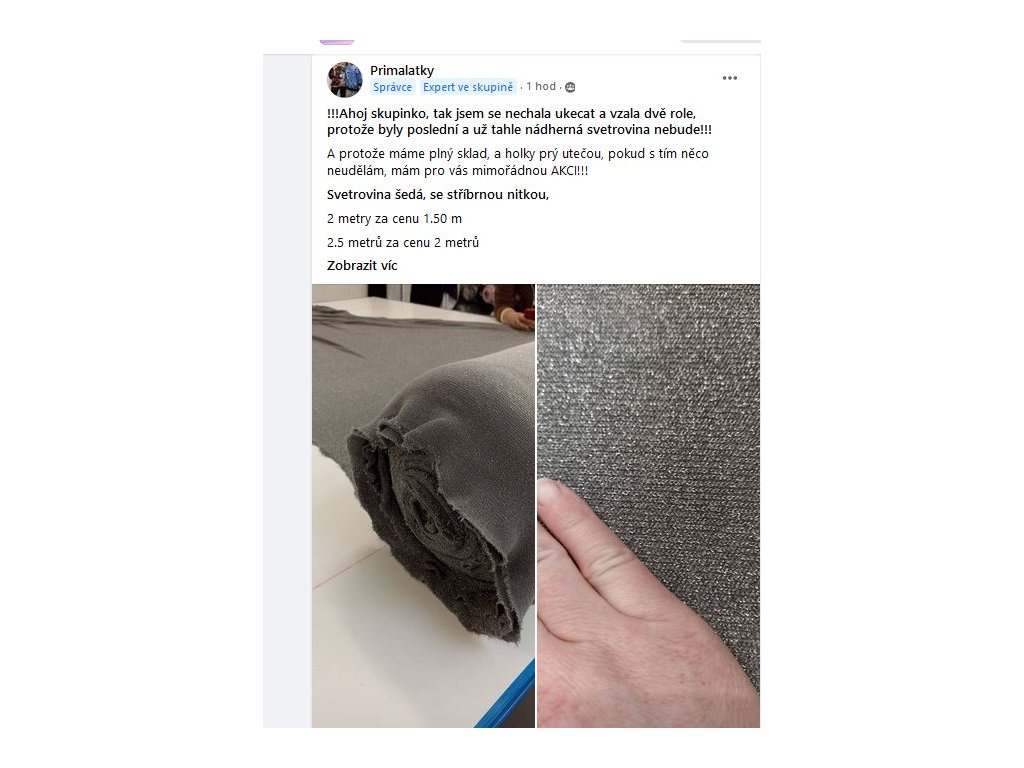 Pružná, složení 95 % polyester, 5 % elastan. NA ZBOŽÍ SE NEVZTAHUJE SLEVOVÝ KUPON !!!