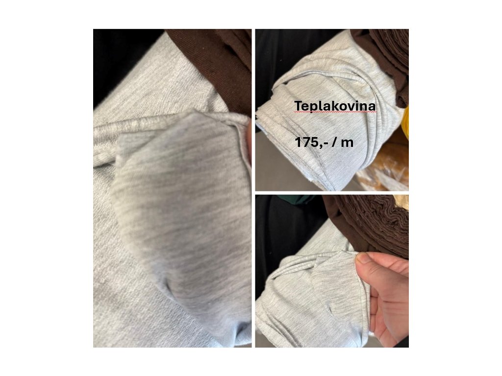 Teplákovina je měkká, hřejivá a elastická látka ideální pro mikiny, kalhoty, šaty nebo dětské oblečení. Díky příměsi elastanu krásně pruží, drží tvar a je velmi příjemná na nošení. Z rubu je hladká.