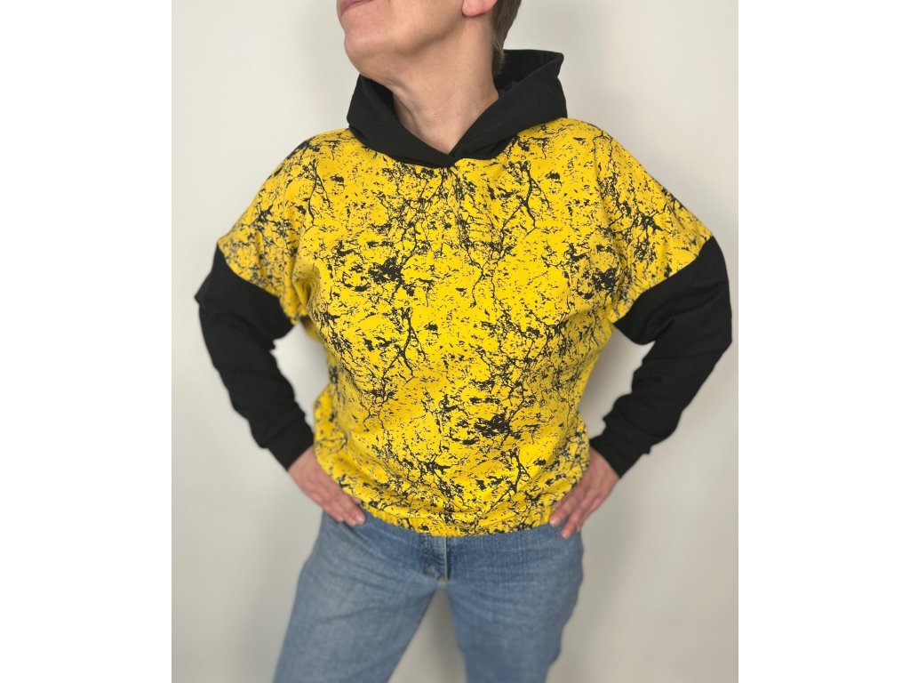 Počesaná teplákovina s rotačním tiskem, barva hořčice, FT50107A, INV