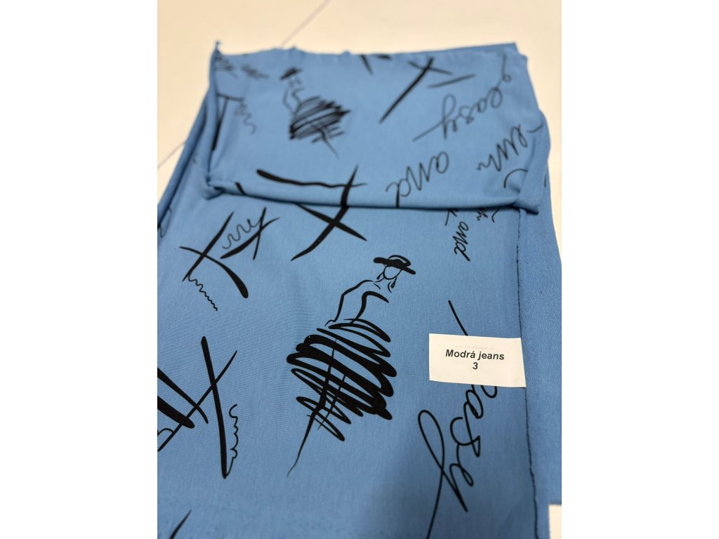 Teplákovina French Terry, rotační tisk, 250g, barva modrá jeans, FT51023