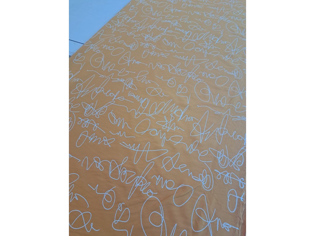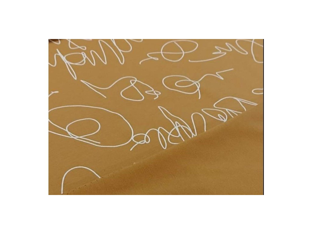Teplákovina rotační tisk, bílý vzor, podklad hořčicový, TD30213, OK09