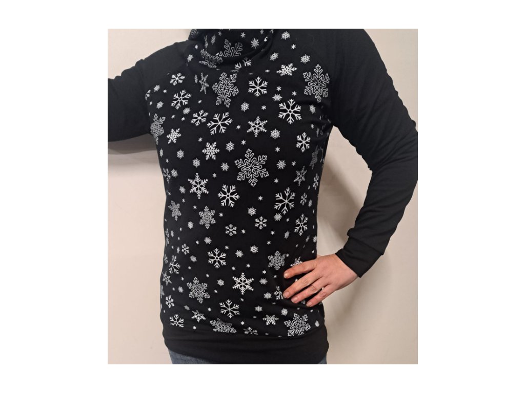 Teplákovina rotační tisk vločky na černé, š. 175 cm, FT21131, OK09