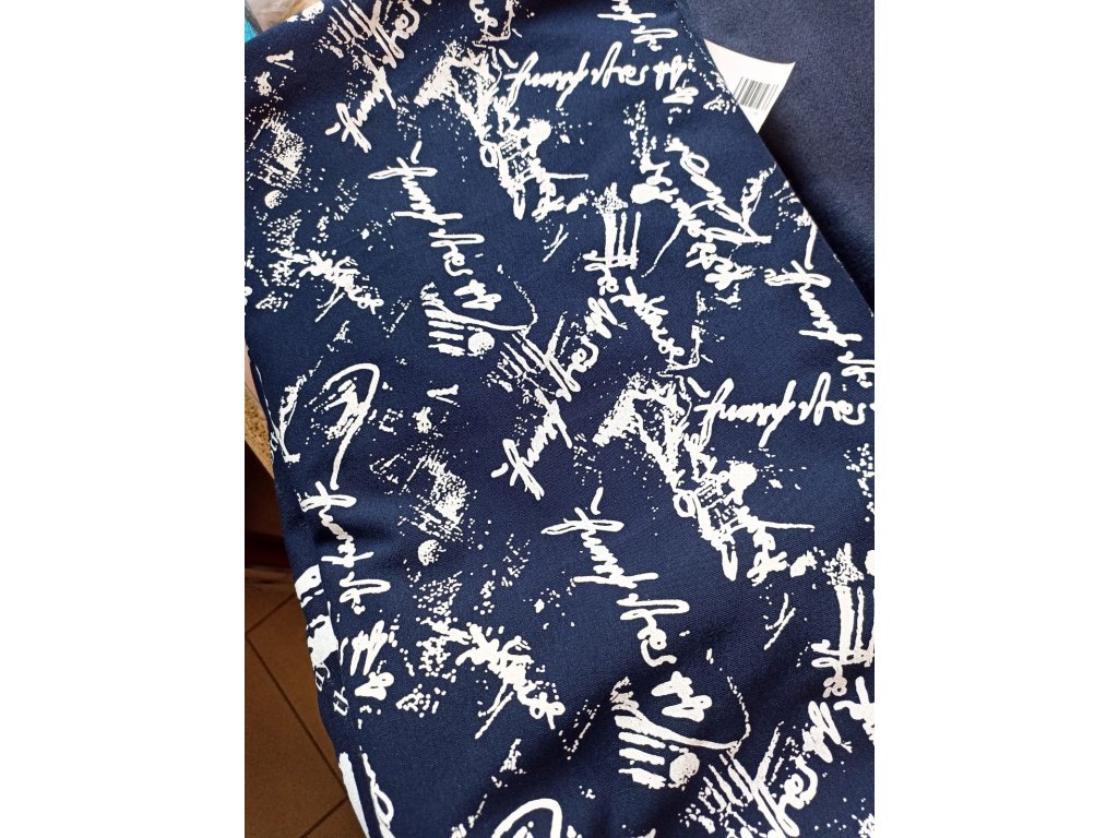 Teplákovina Tamara, rotační tisk, bilý vzor, tmavě modrý podklad, FT40304, délka1.5m, OK09