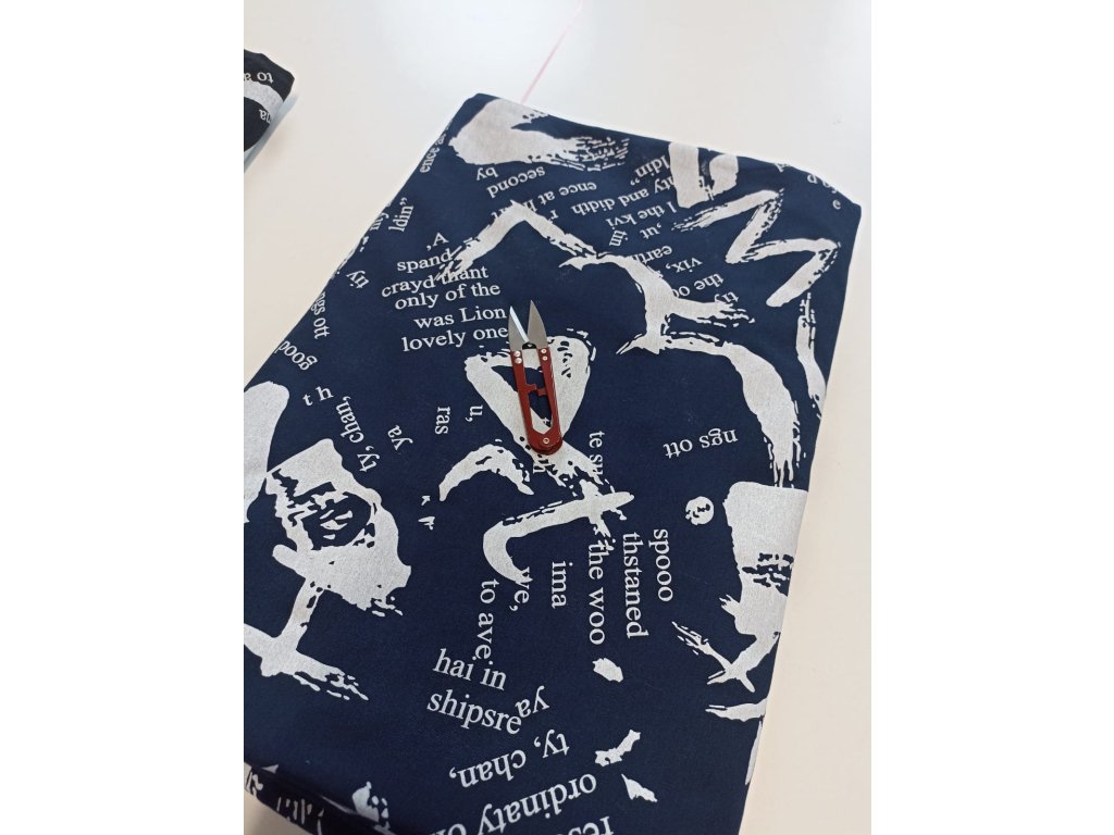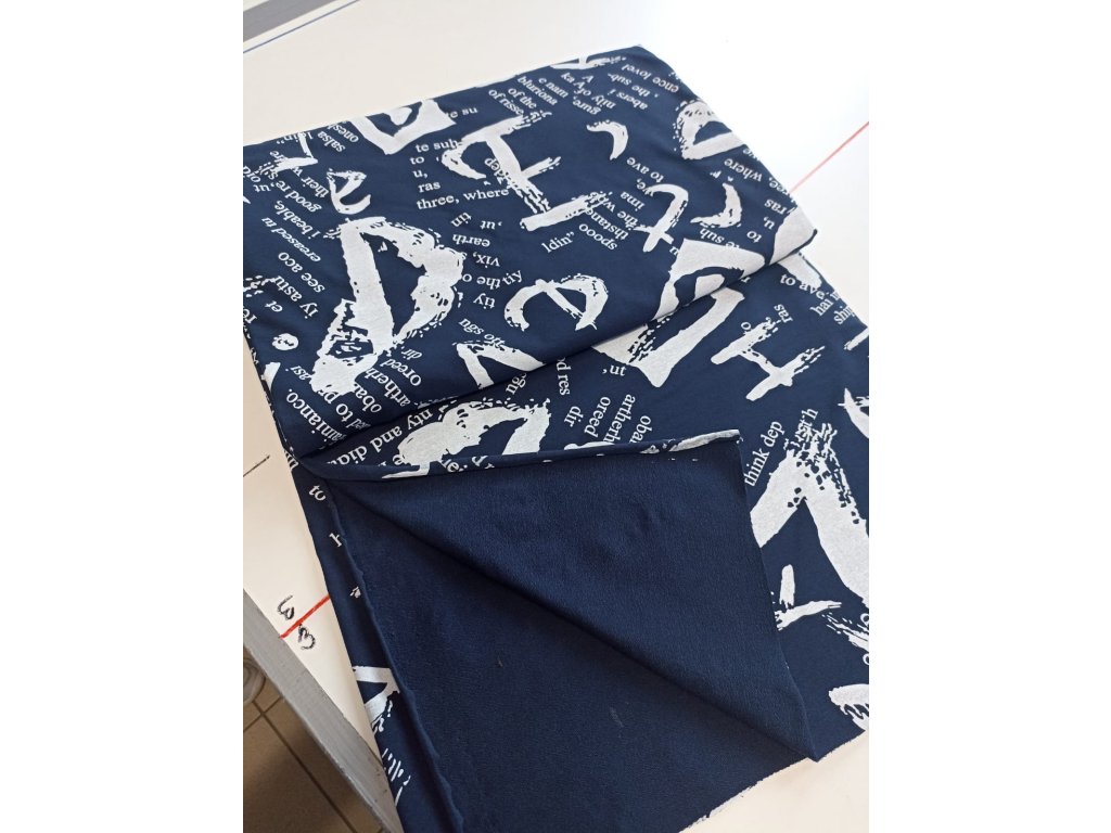 Teplákovina Tamara, rotační tisk,panel délka 95 cm, tmavě modrý podklad, FT40310B, OK09