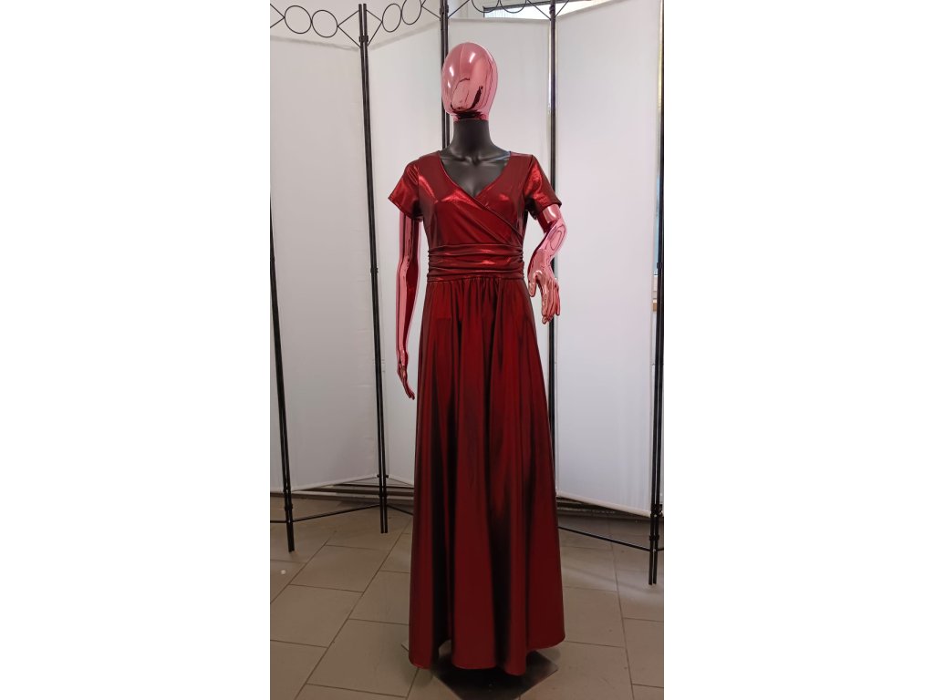 Kovový lesk vzniká kombinací hladkého nylonového vlákna a mikroskopické kovové vrstvy, která odráží světlo podobně jako kovový povrch – proto látka při pohybu doslova září. Drží tvar a krásně září.