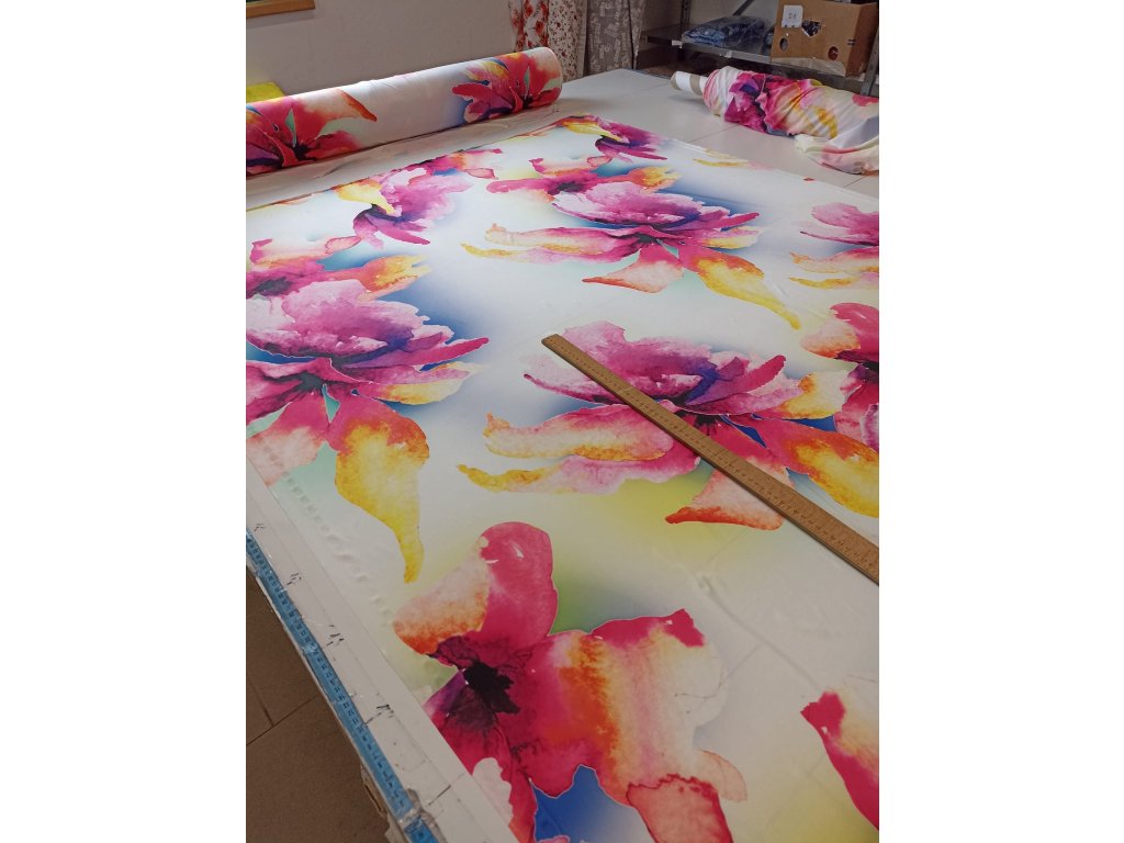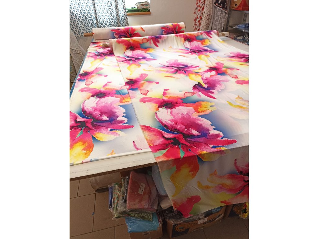 Venezia, polyesterový úplet, velké barevné květy, 220509, délka 1m, OK05